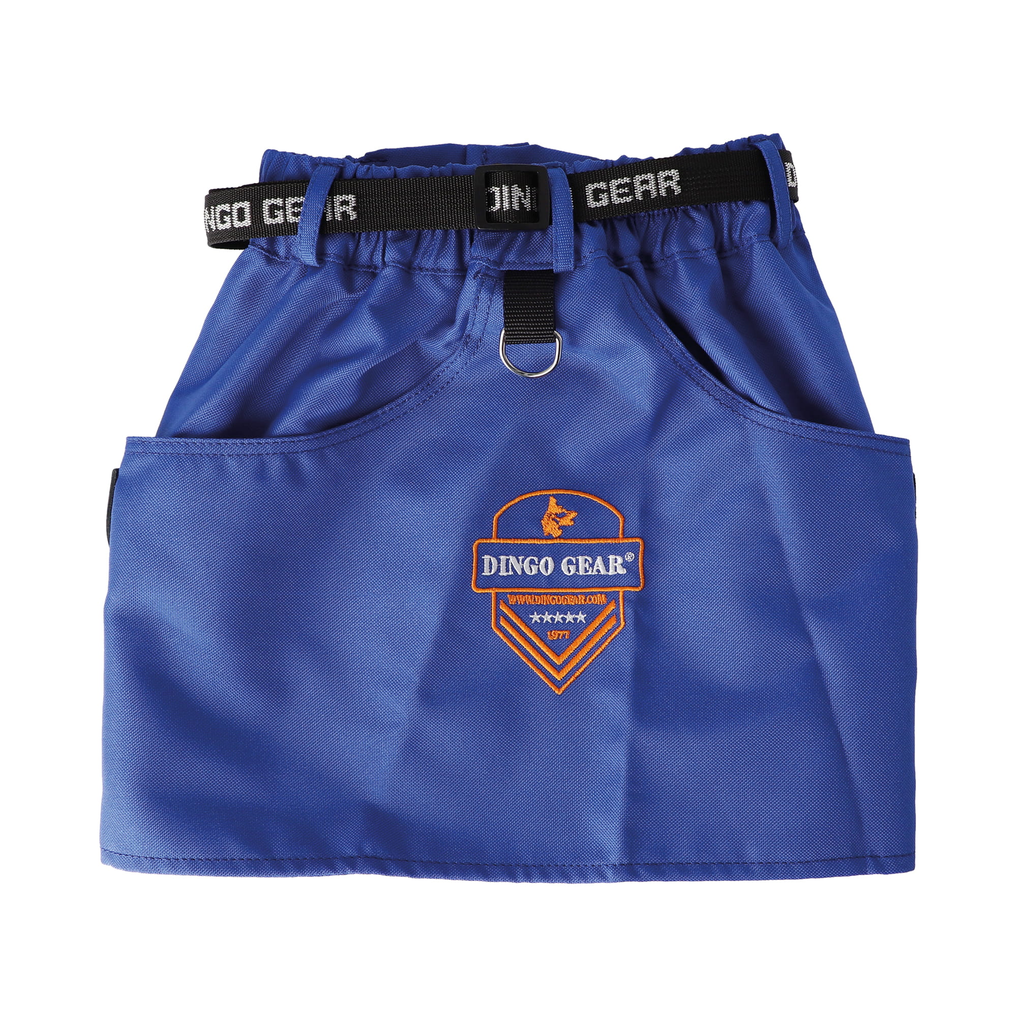 Uniwersalny pas dla przewodnika psa do treningów został wykonany z materiału rip-stop. Powszechnie stosowana nazwa dla tego rodzaju odzieży to „spódniczka”.