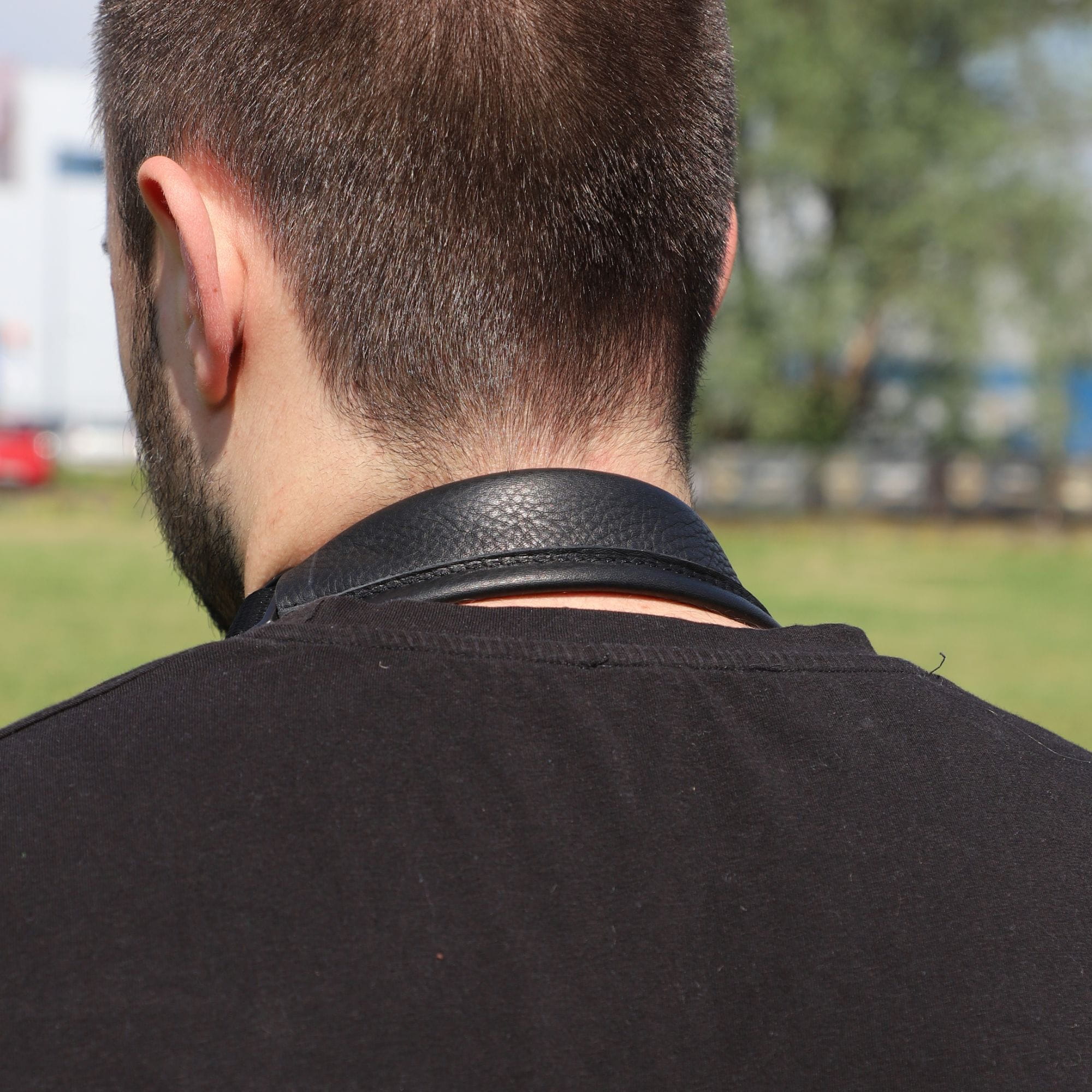 - regulowany pasek na szyję wyściełany skórzaną podkładką dla zwiększenia komfortu pozoranta