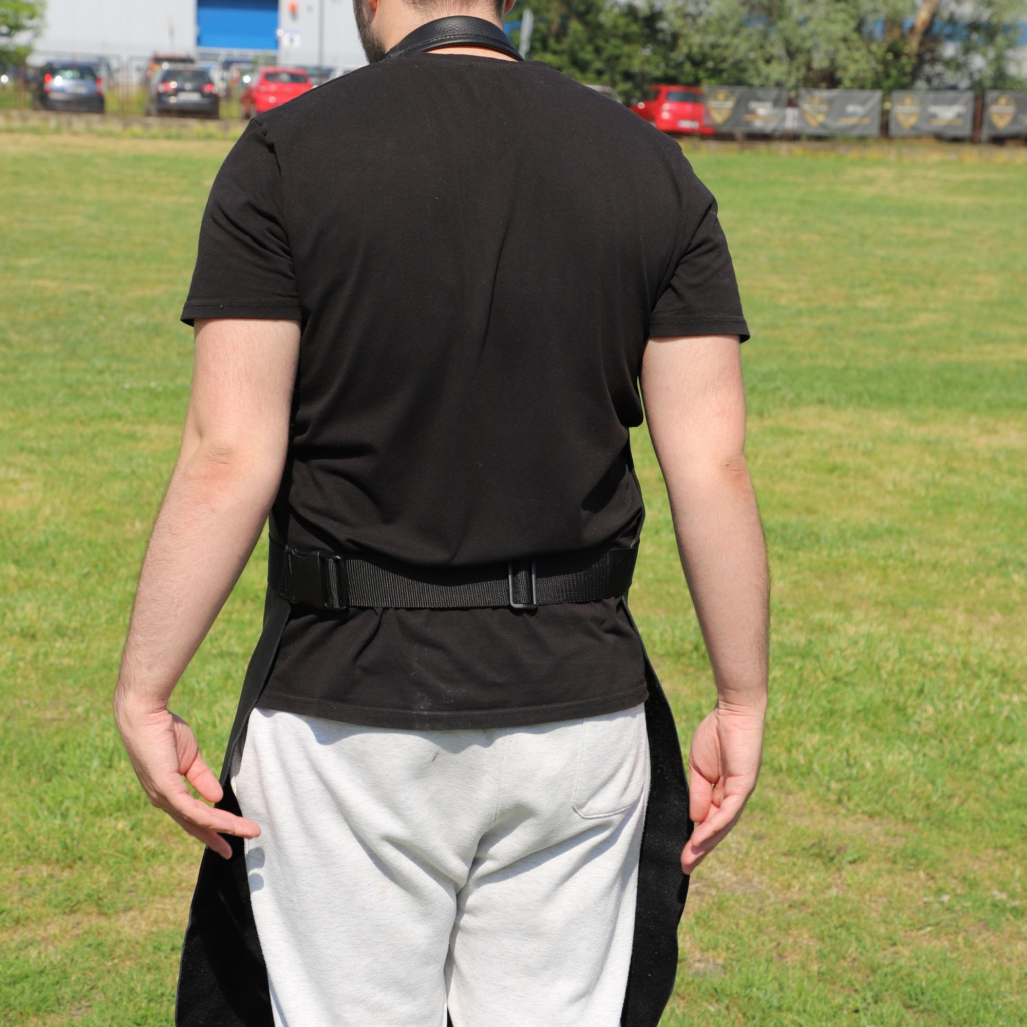 Fartuch ochronny dla pozoranta lub trenera wykonany z mocnej skóry chroni przed zadrapaniami psich pazurów. Doskonały do szybkiego zakładania i zdejmowania podczas szkolenia. Może być wykorzystywany do nauki aportowania np. w wodzie lub innych trudnych warunkach treningowych. Polecany przez szkoleniowców sportów IGP. Wykonany ręcznie z dużą starannością o każdy szczegół, aby zapewnić trwałość i bezpieczeństwo użytkowania.