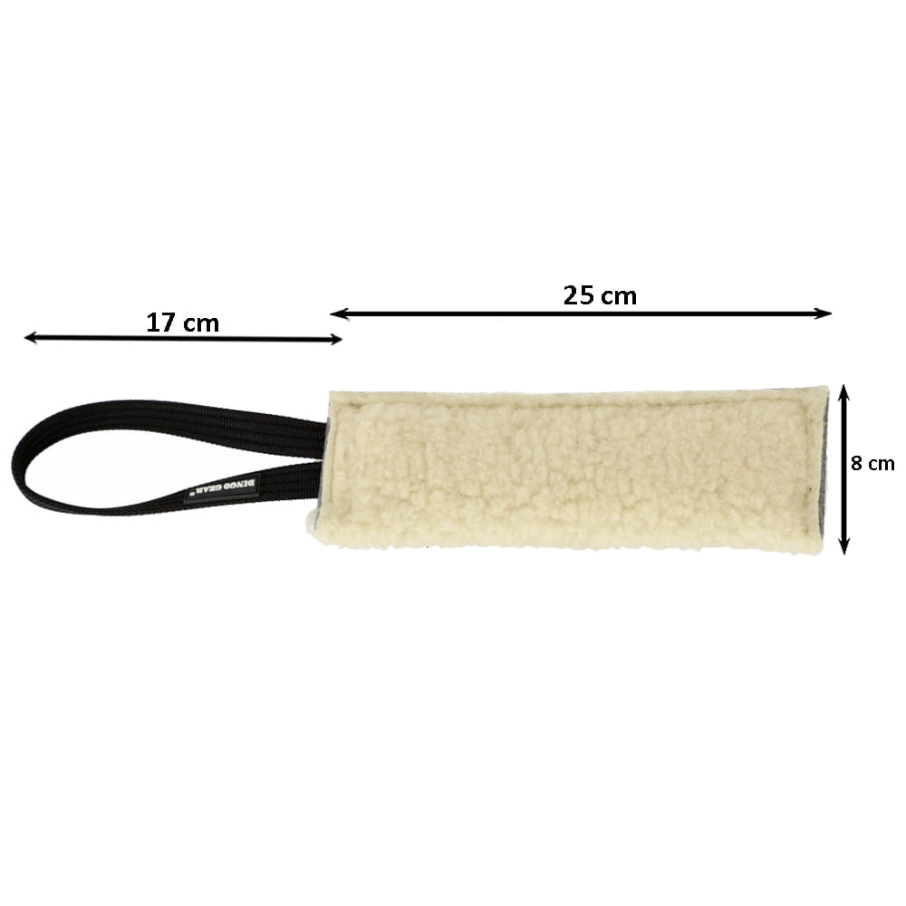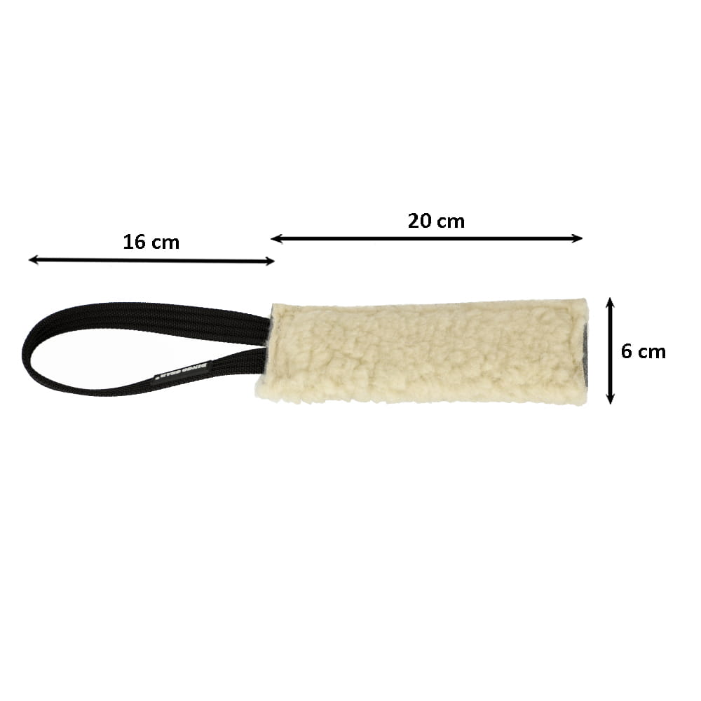 Szarpak pluszowy z owczej wełny o dużej miękkości znajduje zastosowanie podczas nauki gryzienia i przy zabawie jako specjalistyczny produkt treningowy dla szczeniaków*. Przetestowano go pod kątem funkcjonalności, a następnie został zaakceptowany przez trenerów szkolących czworonogi w profesjonalnych ośrodkach europejskich. Ponieważ wiemy, jak istotna jest wytrzymałość szarpaka podczas szkoleń, zadbaliśmy o każdy szczegół, wytwarzając go precyzyjnie, ręcznie.