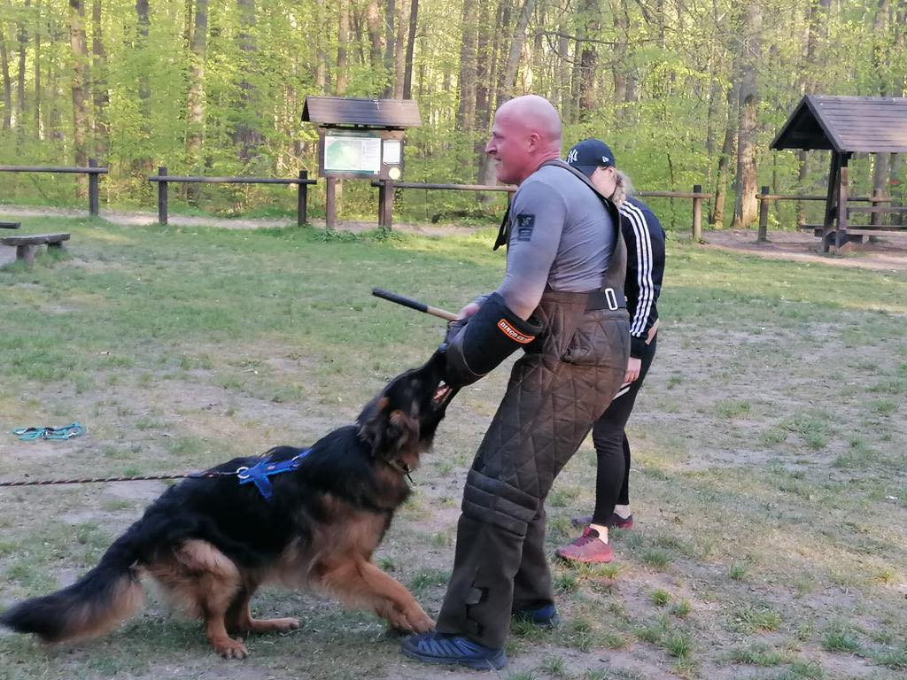 Spodnie do pracy z psami są częścią lekkiego ubrania z kodury przeznaczonego do szkoleń IGP, K9 i nauki „bicia w kagańcu” – treningu, w którym pies z nałożonym kagańcem uczy się obrony oraz ataku bez możliwości gryzienia.
