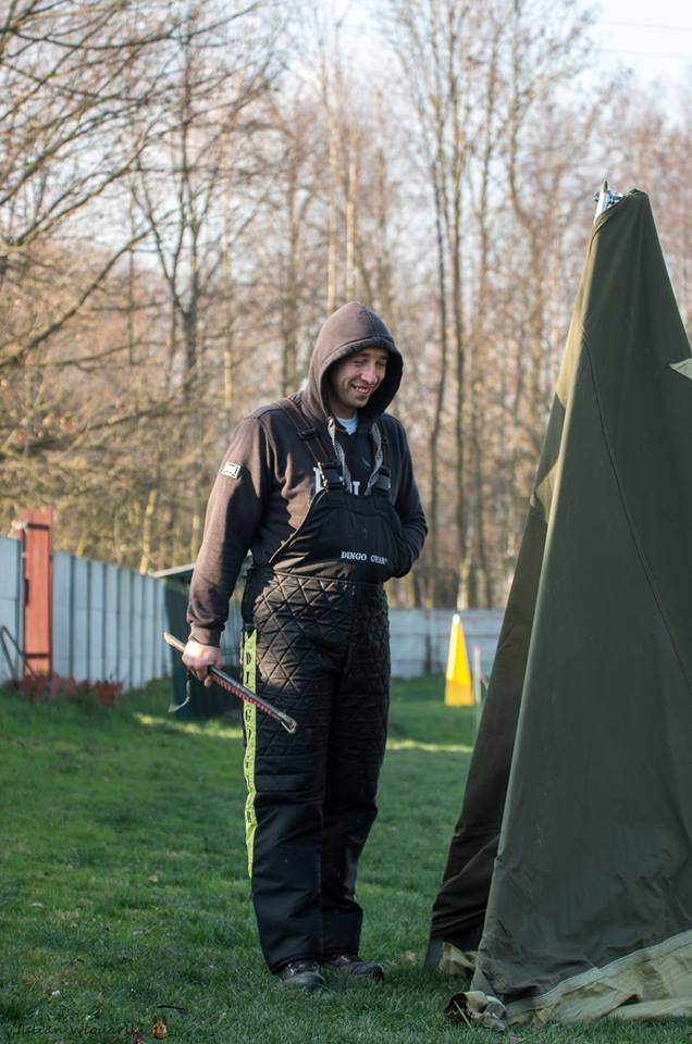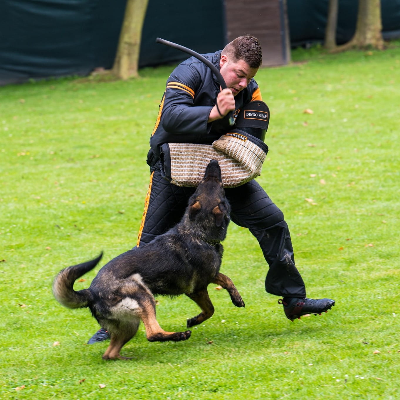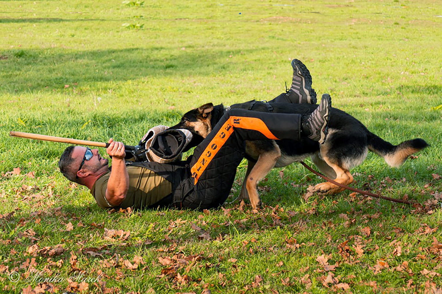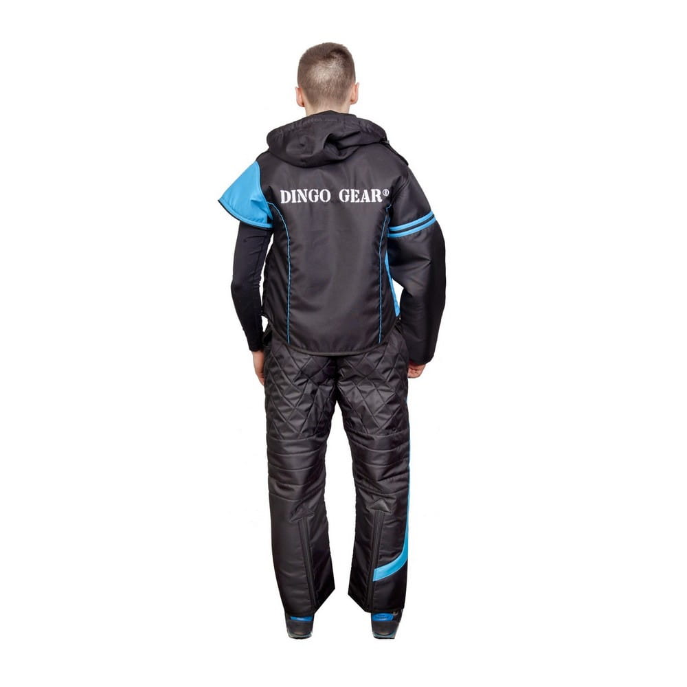 Super lekkie ubranie dla pozoranta składa się z kurtki i spodni. Kostium nie krępuje ruchów pozoranta co pozwala na bardzo efektywną pracę z psem. Kurtka zapinana na zamek YKK posiada kaptur ze sznurowaniem oraz jeden rękaw (przypinany na zamek), który można dopiąć na lewą lub prawą rękę. Kaptur i rękaw można odpiąć dzięki czemu kurtka staje bezrękawnikiem. Spodnie mają fason ogrodniczek, w których nogawki są pikowane oraz mają zapięcia na łydkach co ułatwia ich zakładanie bez zdejmowania butów. Szelki wykonane z miękkiej gumy posiadają regulację długości. Kurtka i spodnie zostały wyposażone w kieszenie, w których można przechowywać różne drobiazgi. Ubiór dla pozoranta wykonaliśmy ręcznie z precyzją, aby użytkownicy uzyskali właściwy komfort podczas treningów.